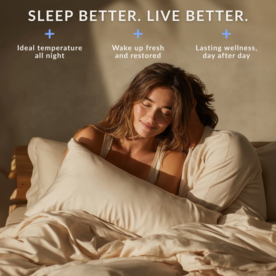 Dry pillow. Dry sheets. Skin that breathes. Average measurement: -4.5°F skin temperature in 20 minutes.